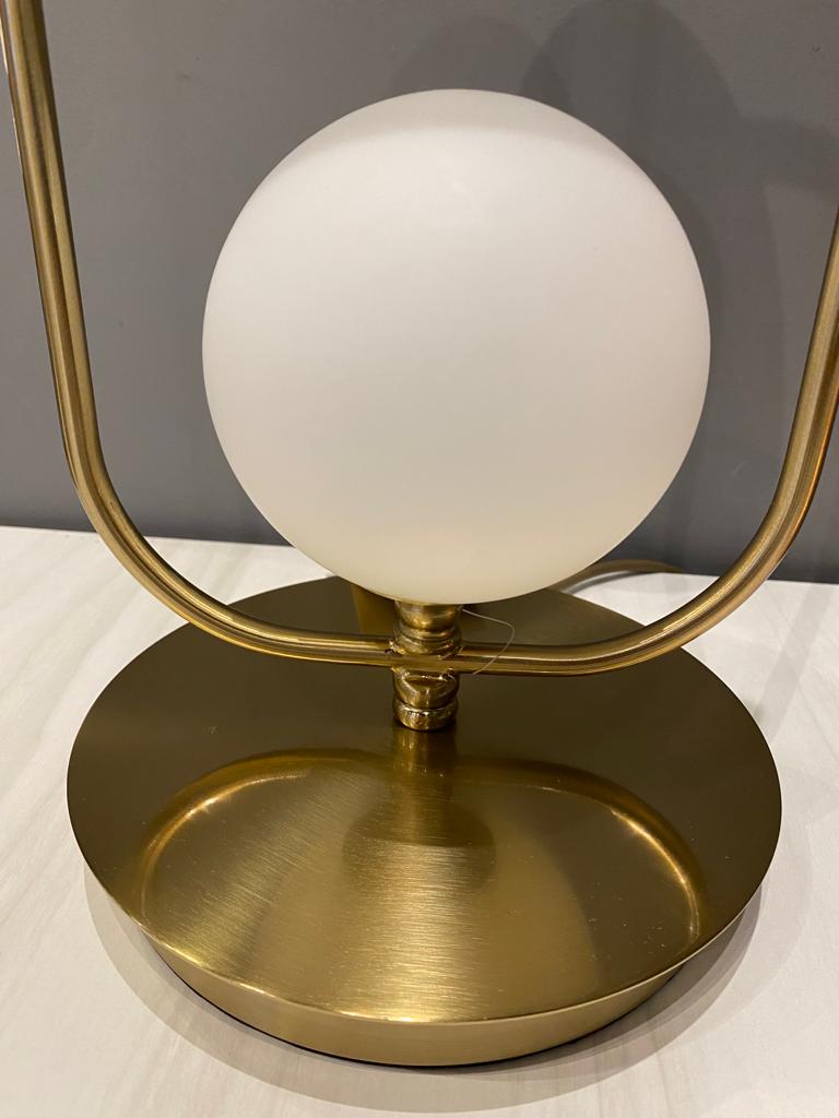 ABAJUR HASTE DOURADA ESFERA LEITOSA 22X50 2G9