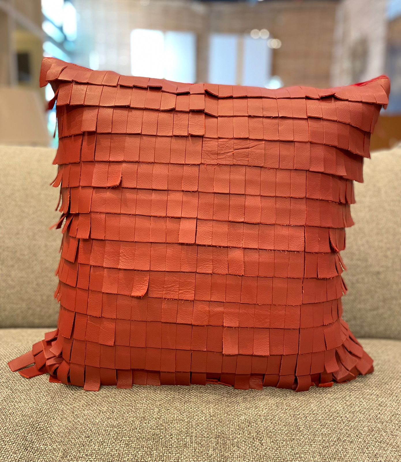 ALMOFADA COURO NATURAL VERMELHO TRESSE MOD 4