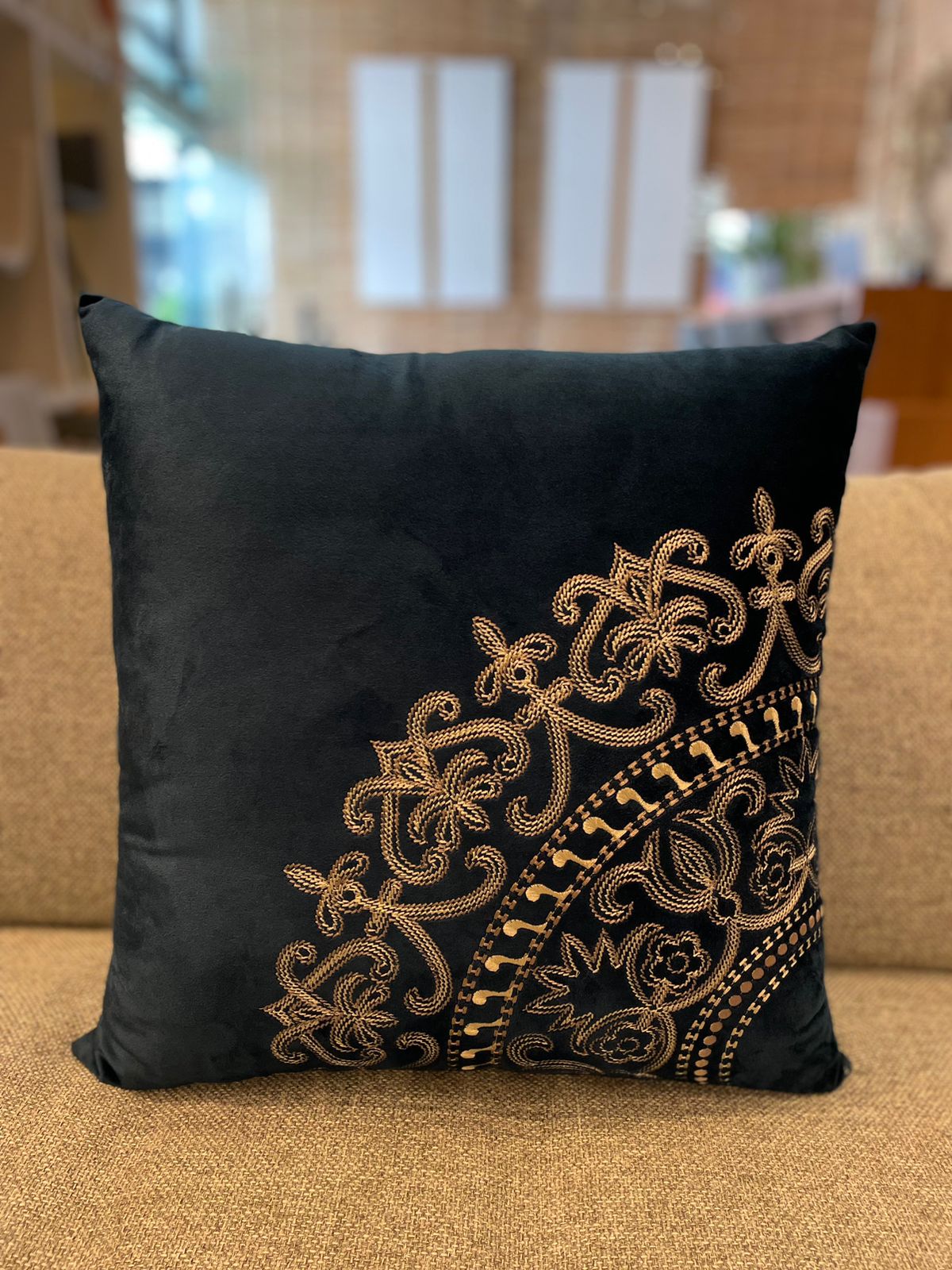 ALMOFADA EM VEL MARINHO C/BORDADO