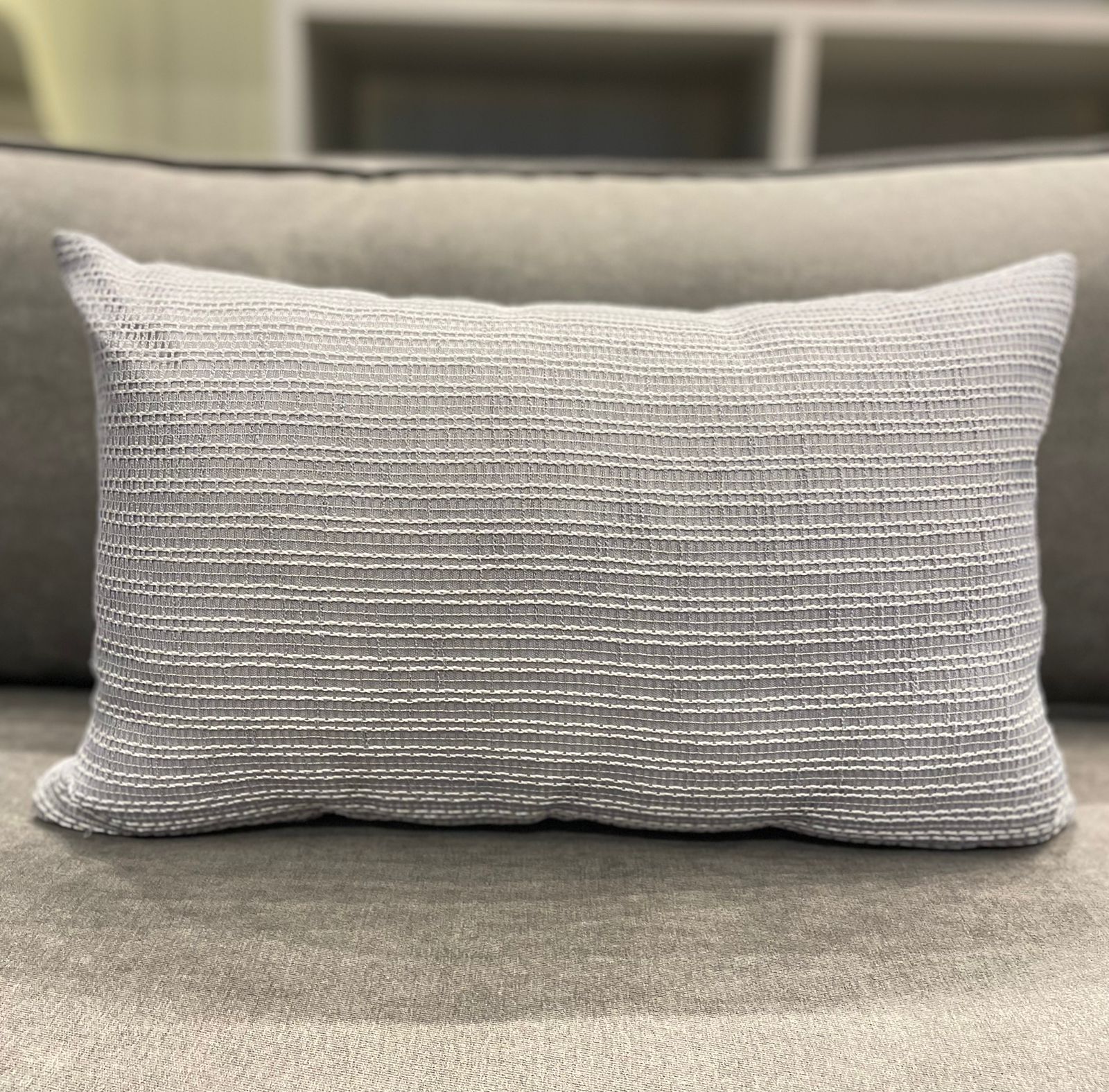 ALMOFADA LOMBAR CINZA E BRANCOVERSO VELUDO CINZA 32X52