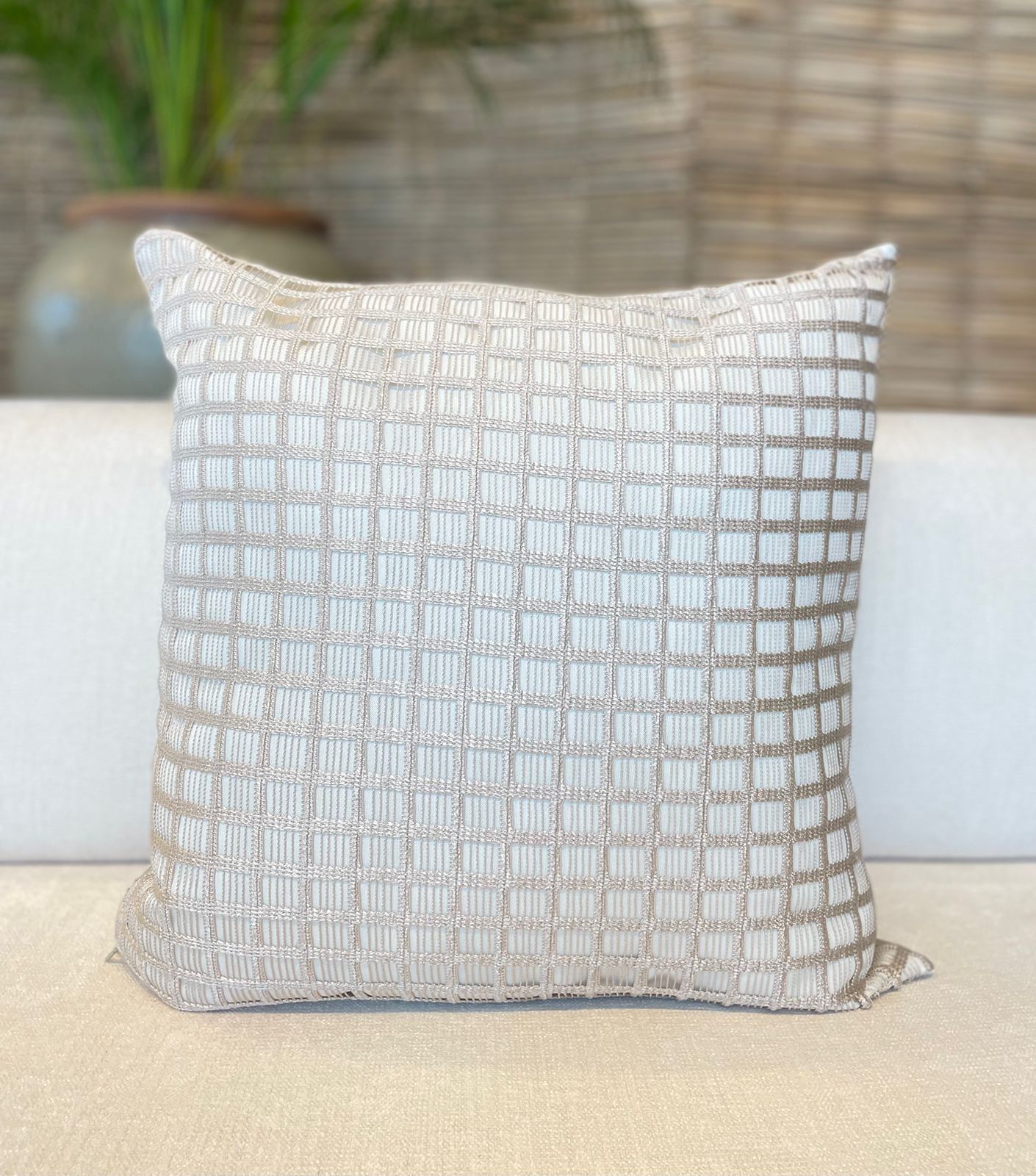 ALMOFADA QUADRADA TRAMA E VELUDO NUDE 52X52