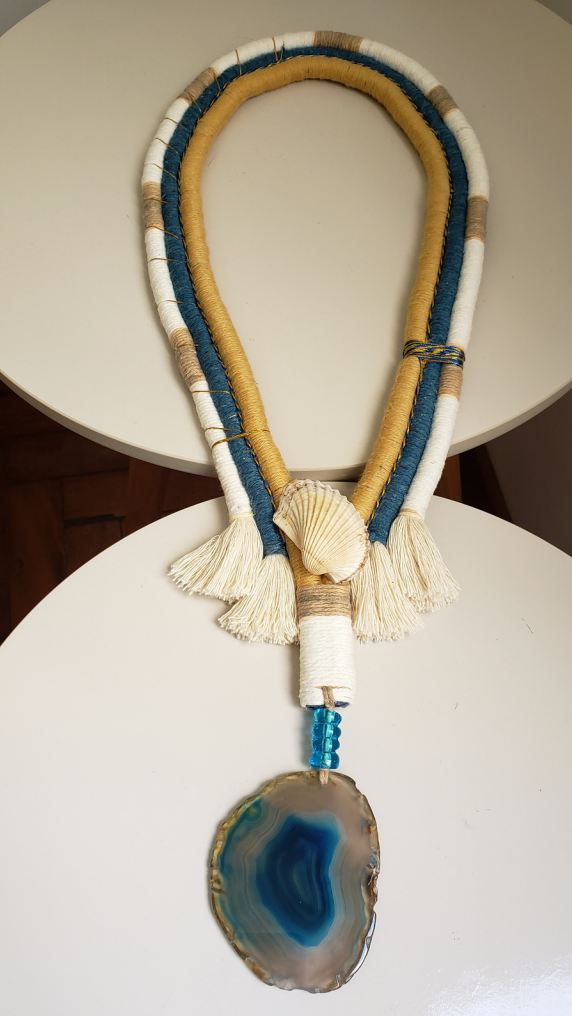 COLAR DECORATIVO COM CORDÕES E PEDRA ÁGATA. TAM 0,55