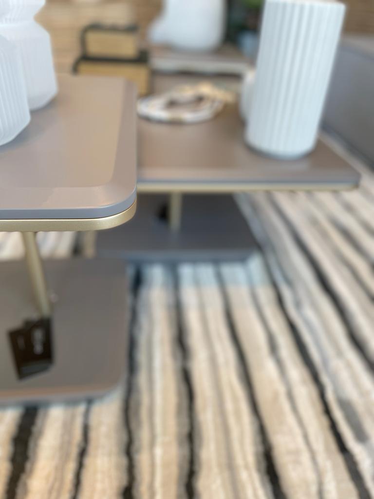 CONJUNTO DE MESAS DE CENTRO SALGUEIRO CARIBOU E DOURADO