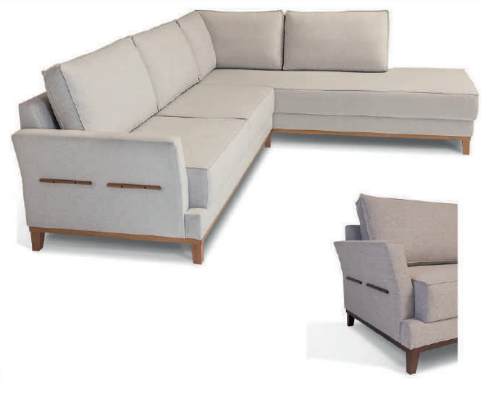 Chaise lado esquerdo 92x190cm + 2 assentos 80cm + braço lado direto 16cm tecido Bronze 2184 madeira Castanho