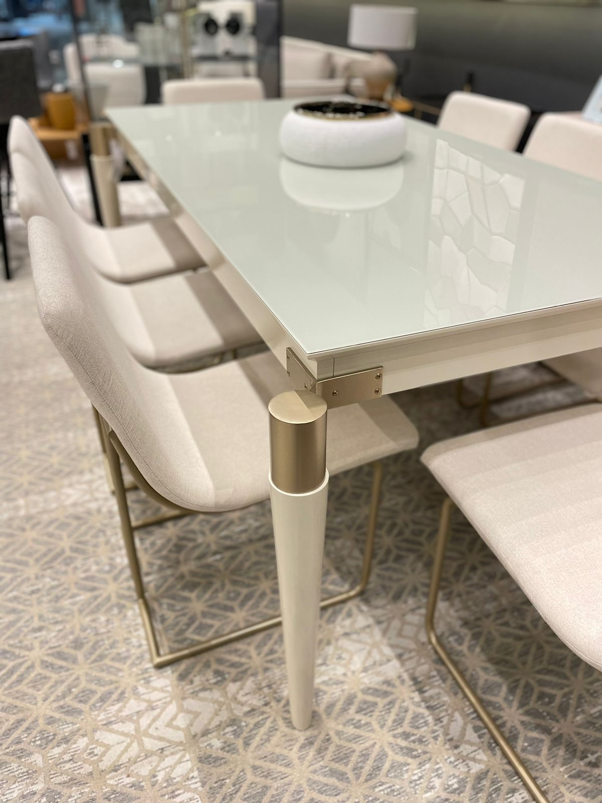 MESA DE JANTAR ARKETIPO LBO OURO VIDRO OFF WHITE 200X100X76