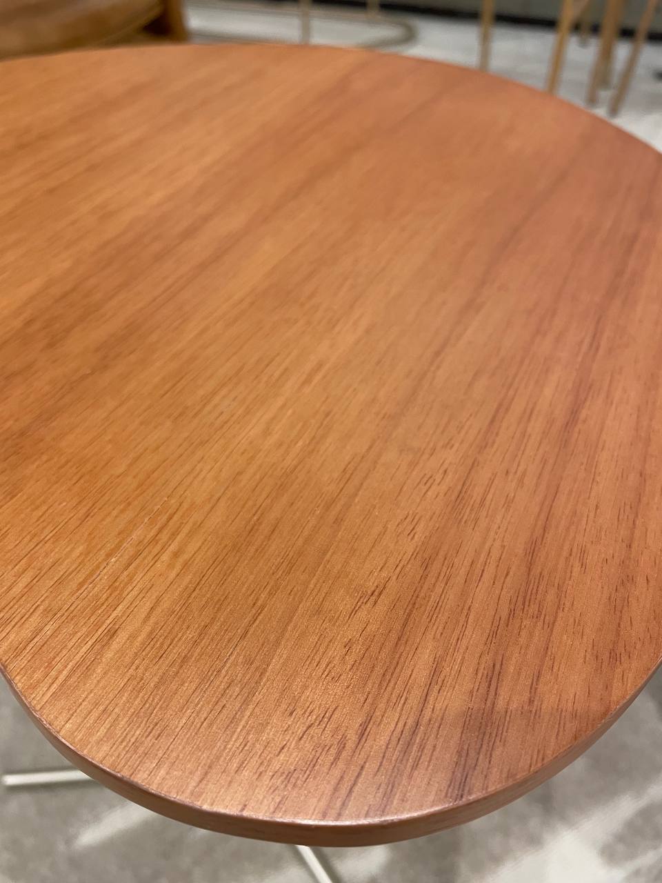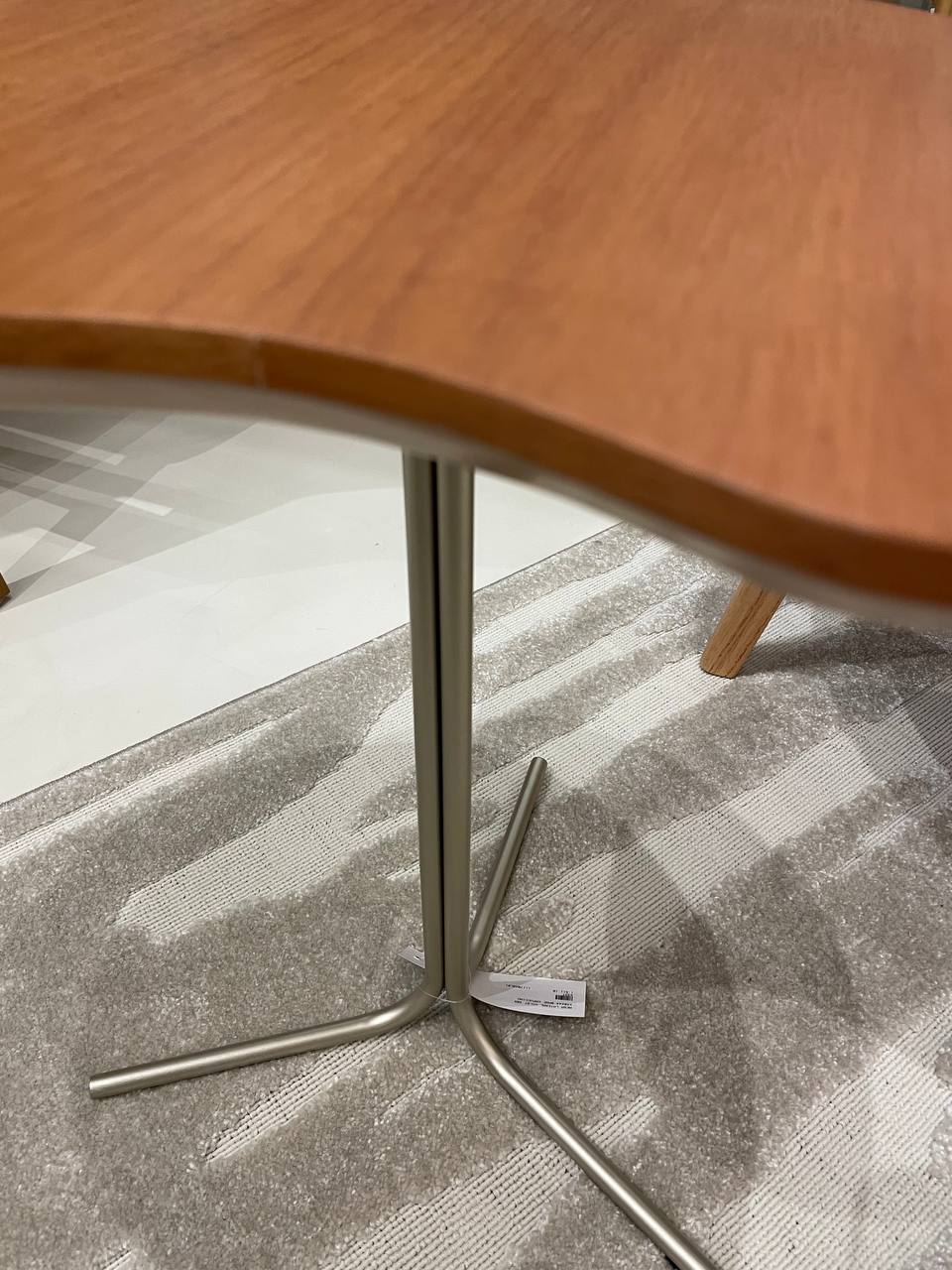 O tampo dessa mesa lateral é confeccionado em madeira natural, realçando a riqueza dos veios e padrões únicos da própria natureza. Cada peça é cuidadosamente selecionada, garantindo um acabamento impecável e uma superfície lisa e agradável ao toque.