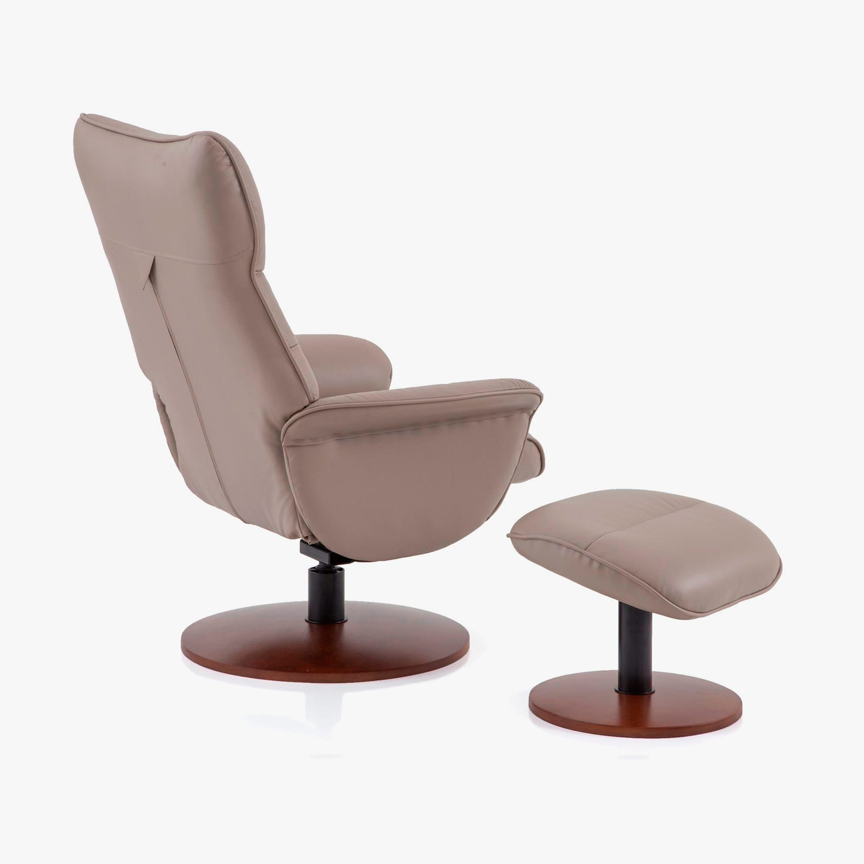 POLTRONA LAVALLE COM PUFF BASE MADEIRA GIR EM COURO TAUPE